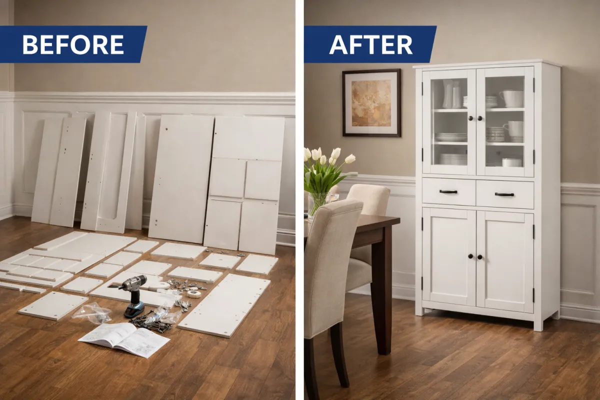 Everything from drywall repairs and door fixes to trim work, cabinet installs, shelving, furniture assembly, and secure TV mounting to keep your interior looking polished and fully functional.